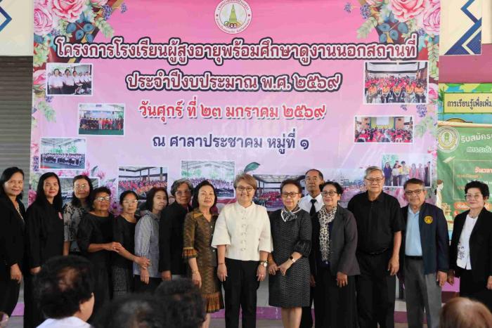 วันที่ 23 มกราคม 2569 ณ ศาลาประชาคมบ้านทุ่ม หมู่ที่ 1 นางสาวงามตา เสนะไพวรรณ นายกเทศมนตรีเมืองบ้านทุ่ม ให้เกียรติเป็นประธานในพิธีเปิดโครงการโรงเรียนผู้สูงอายุประจำปีงบประมาณ พ.ศ. 2569 โดยมี นางสาวนภาทิพย์ จันทราษฎร์ ผู้อำนวยการโรงเรียนผู้สูงอายุ เป็นผู้กล่าวรายงานถึงวัตถุประสงค์และภาพรวมของกิจกรรม โดยมีคณะผู้บริหาร สมาชิกสภาเทศบาล หัวหน้าส่วนราชการ พนักงานเทศบาล และนักเรียนผู้สูงอายุที่เข้าร่วมงานอย่างพร้อมเพรียง โดยโครงการนี้มีวัตถุประสงค์หลัก ได้แก่: -การเรียนรู้ตลอดชีวิต: ส่งเสริมการพัฒนาคุณภาพชีวิตและการจัดการเรียนรู้อย่างต่อเนื่อง -การคุ้มครองสิทธิ: สร้างความรู้ความเข้าใจในการดูแลและพิทักษ์สิทธิของผู้สูงอายุ -สุขภาพดีถ้วนหน้า: มุ่งเน้นการดูแลสุขภาพทั้งด้านร่างกายและจิตใจให้แข็งแรงสมวัย -สร้างประโยชน์สู่สังคม: สนับสนุนให้ผู้สูงอายุส่งเสริมภูมิปัญญาและทำประโยชน์แก่ชุมชน -เปิดโลกทัศน์: เพิ่มพูนประสบการณ์ผ่านการศึกษาดูงานนอกสถานที่ เพื่อนำความรู้มาประยุกต์ใช้ สำหรับการจัดการเรียนการสอนในรุ่นนี้ นอกจากวิชาการด้านสุขภาพและสิทธิสวัสดิการแล้ว ยังเน้นกิจกรรมกลุ่มสัมพันธ์และการนำผู้สูงอายุไปศึกษาดูงานนอกสถานที่ เพื่อเปลี่ยนบรรยากาศและสร้างแรงบันดาลใจในการใช้ชีวิตให้ผู้สูงอายุในเขตพื้นที่ตำบลบ้านทุ่ม